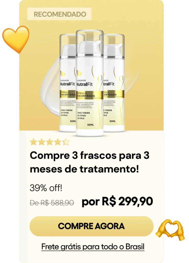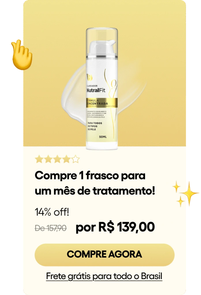 Além de clarear manchas, o clareador NutralFit também melhora a textura da sua pele levando uma aparência mais suave para a pele.